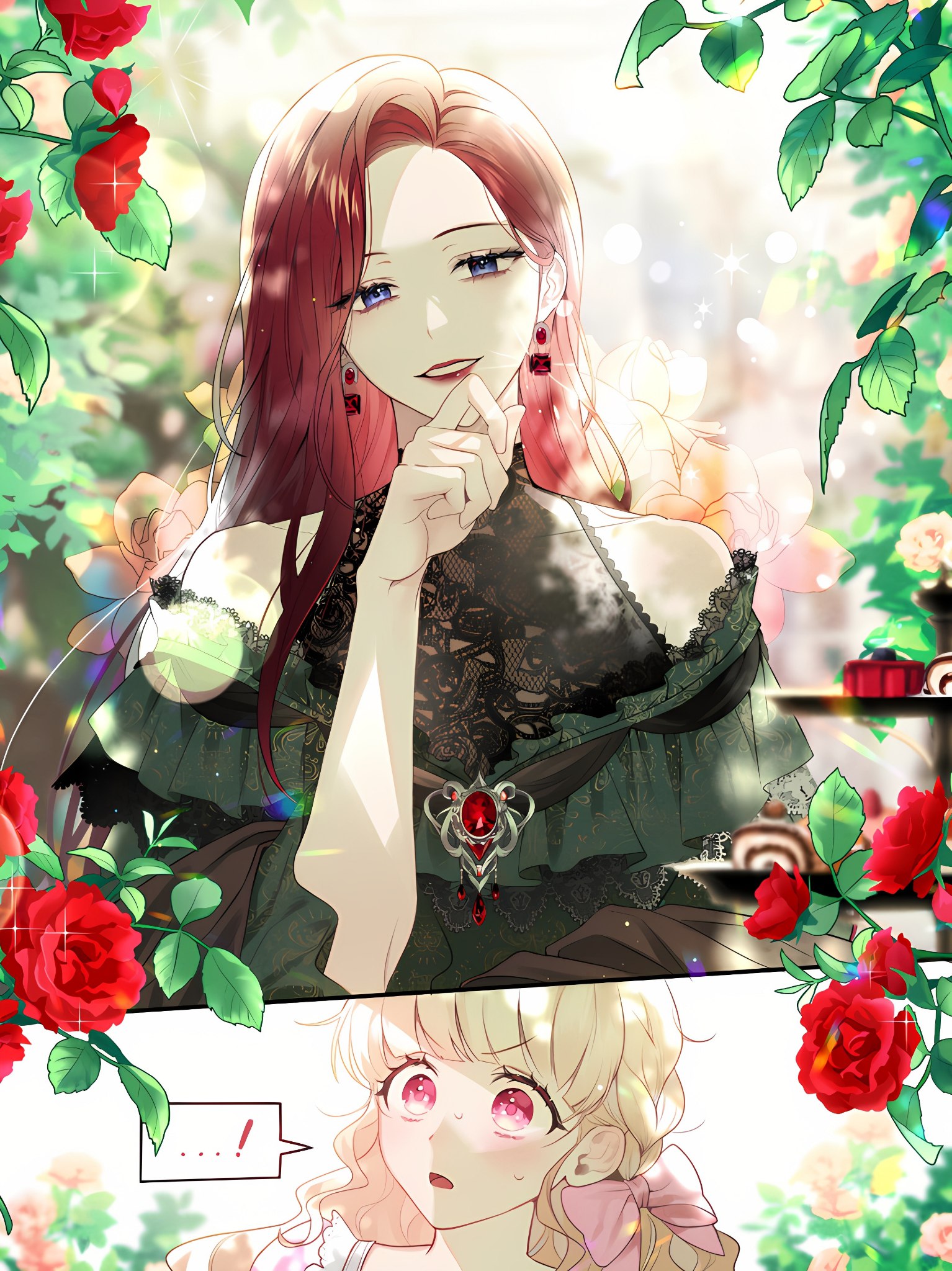 تدخلت دوروثيا كما لو كانت تنتظر، قائلة، “مرحبًا، دوقة بيرديا. لم أرك منذ وقت طويل.”