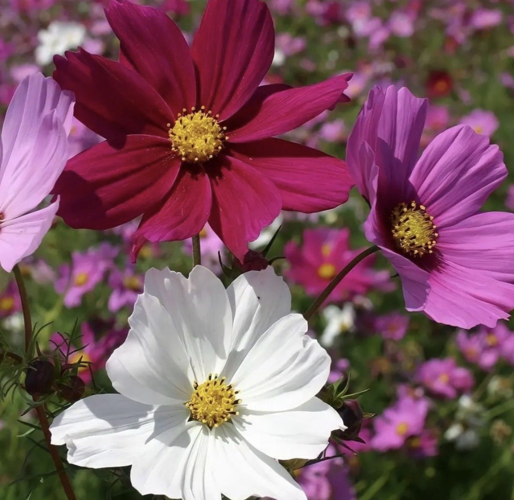 ربما كانت جالسة القرفصاء بين سيقان الكوزموس الطويلة.